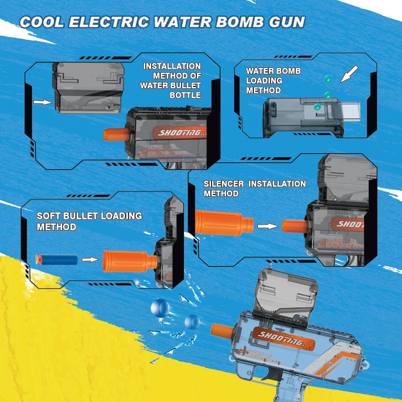 Water Gel Blaster Gun-Transparent Uzi electric water bomb with light