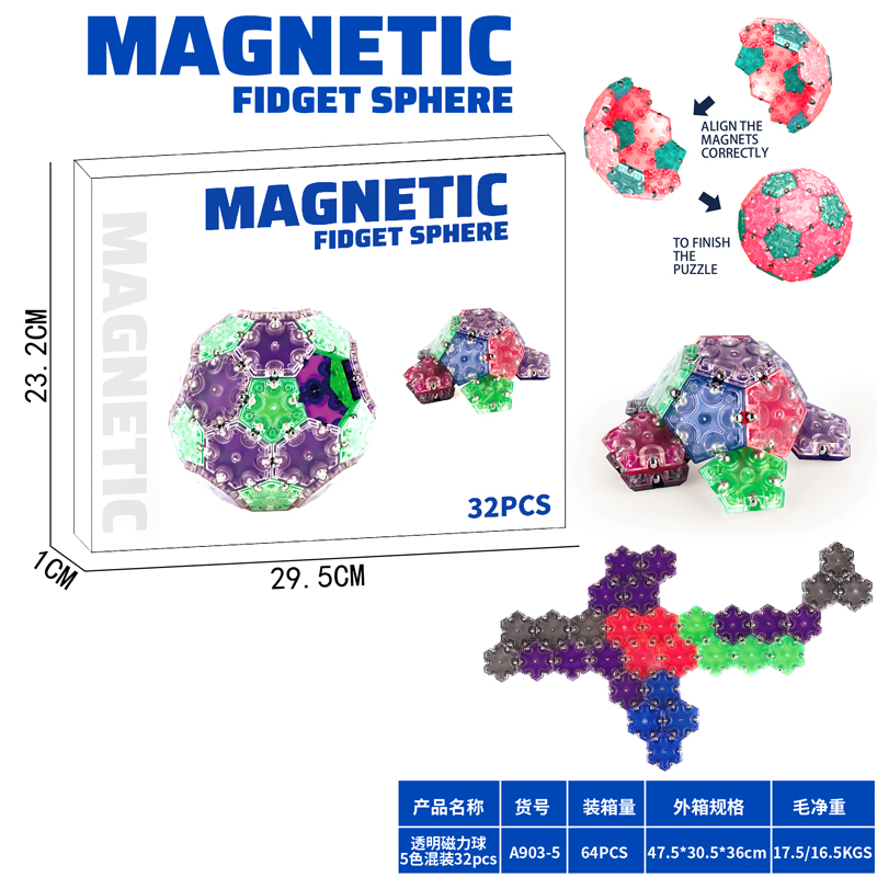 Transparent Five . Hexagon Fit Magnetic Ball 32PCS(5 colors mixed)